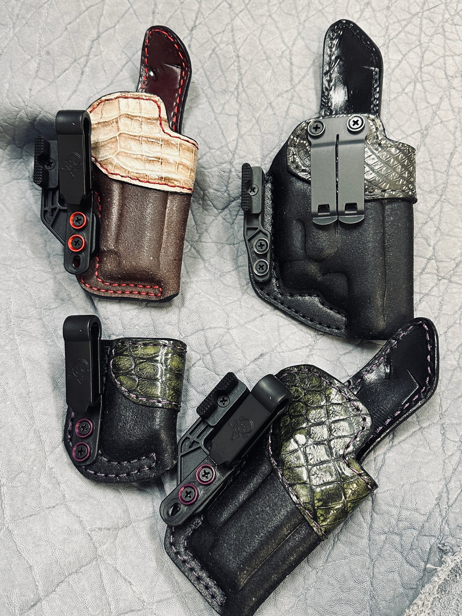 Options: Exotic hides, Modwing or Darkwing, velro (client installed) and choice of clip. NO red dots.