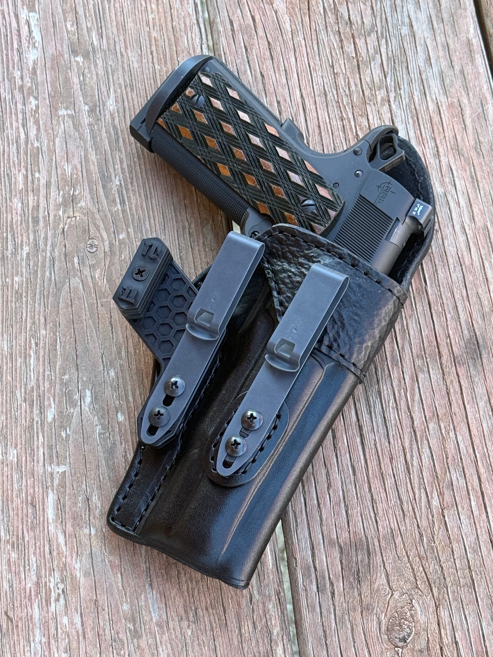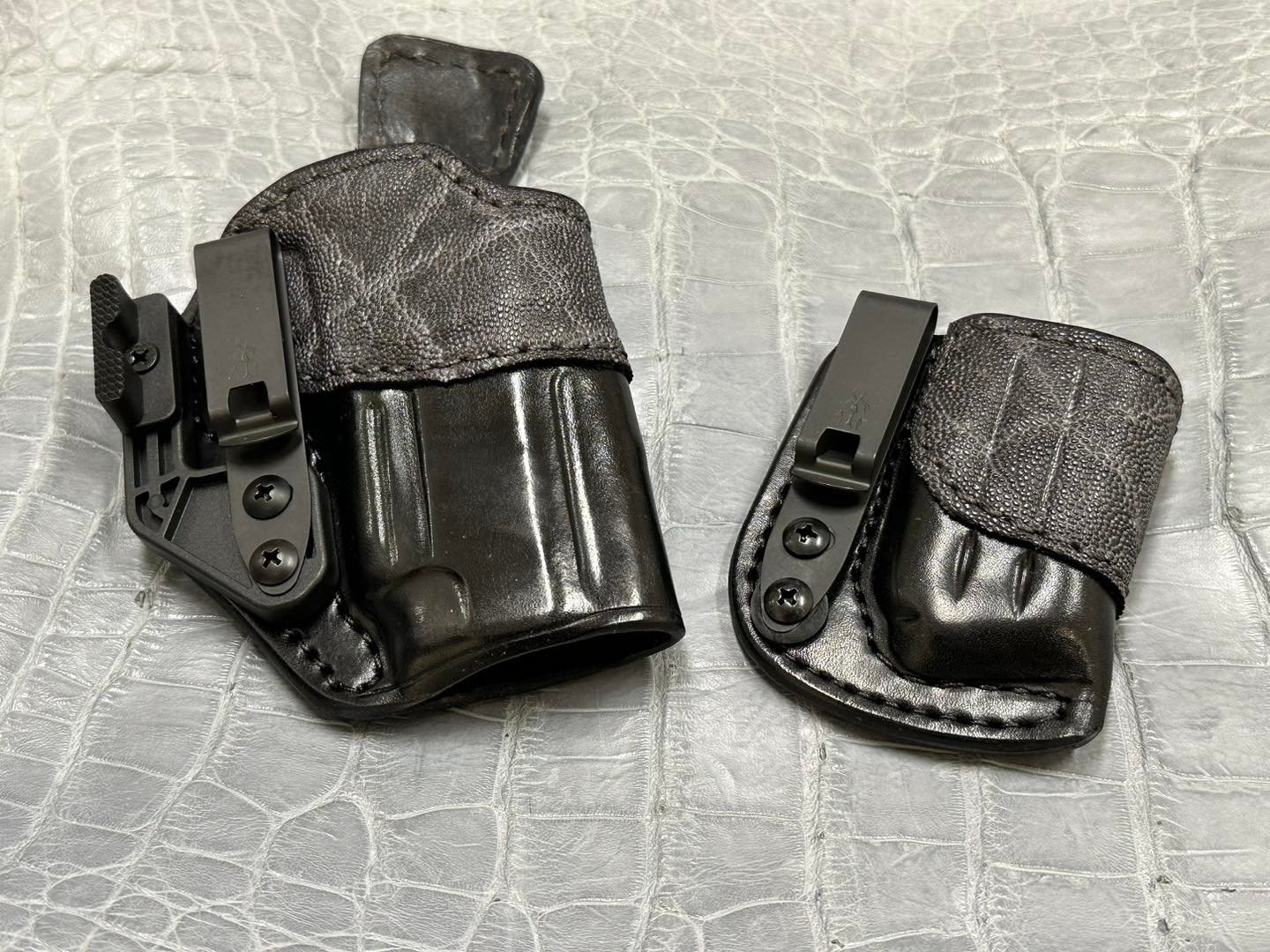 Exotic hides, if desired: https://roninleatherholstersllc.com/Cms/index.php/Colors-and-Exotic-Hides