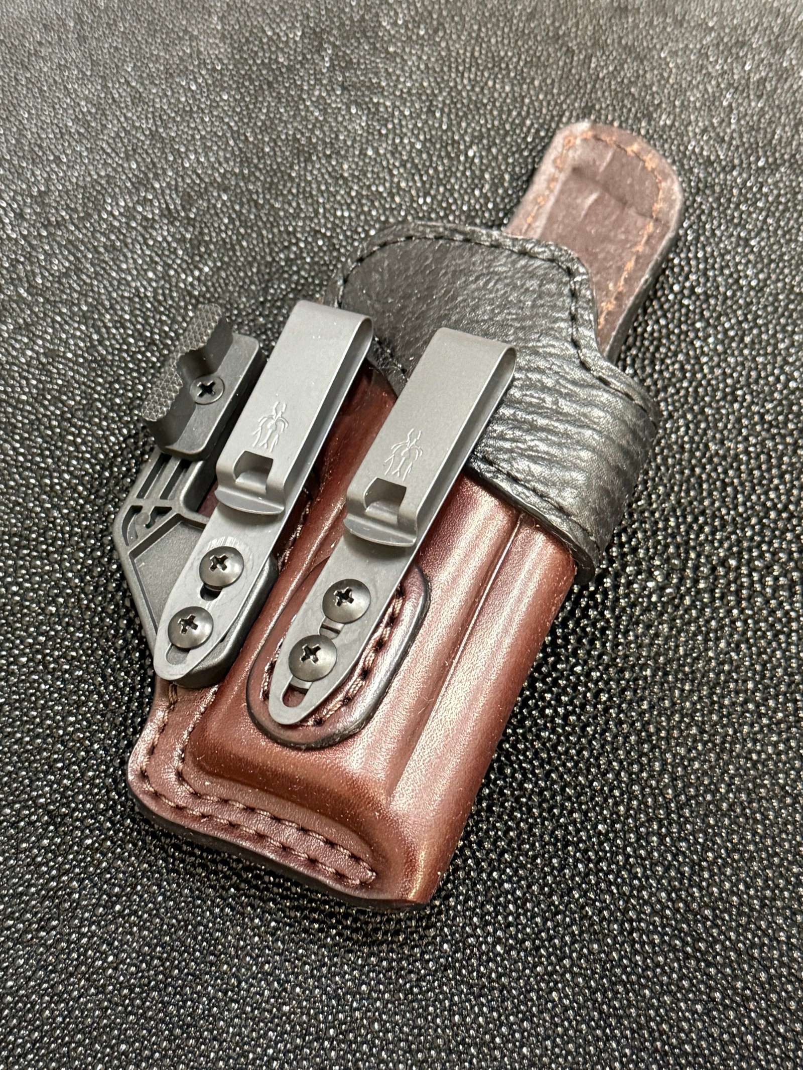The Aegis Calypto 2 offers a client a two clip appendix holster for those who prefer carrying heavier pistols or want to distribute the weight of their EDC.