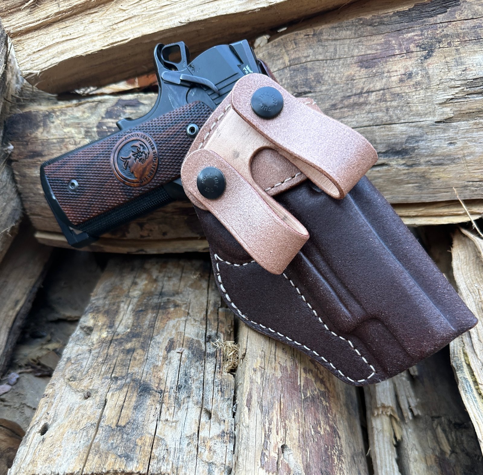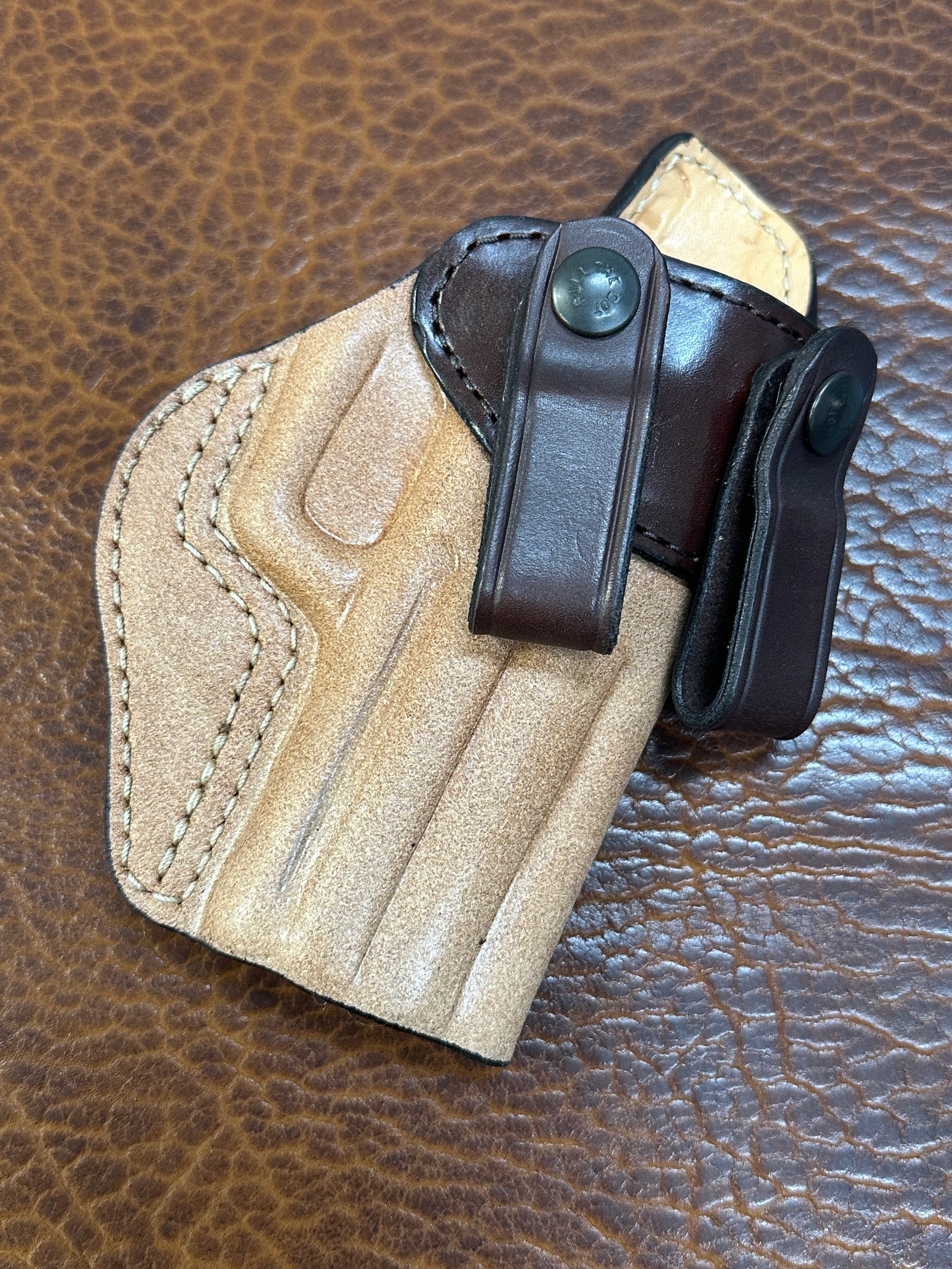This is probably one of the most notable holster in the industry and popular with many holster makers. It is a proven and solid design used by so many shooters worldwide. My take on this design give the customer an option of either a solid piece with the two snap loops or two single snap loops. Please let me know when ordering.