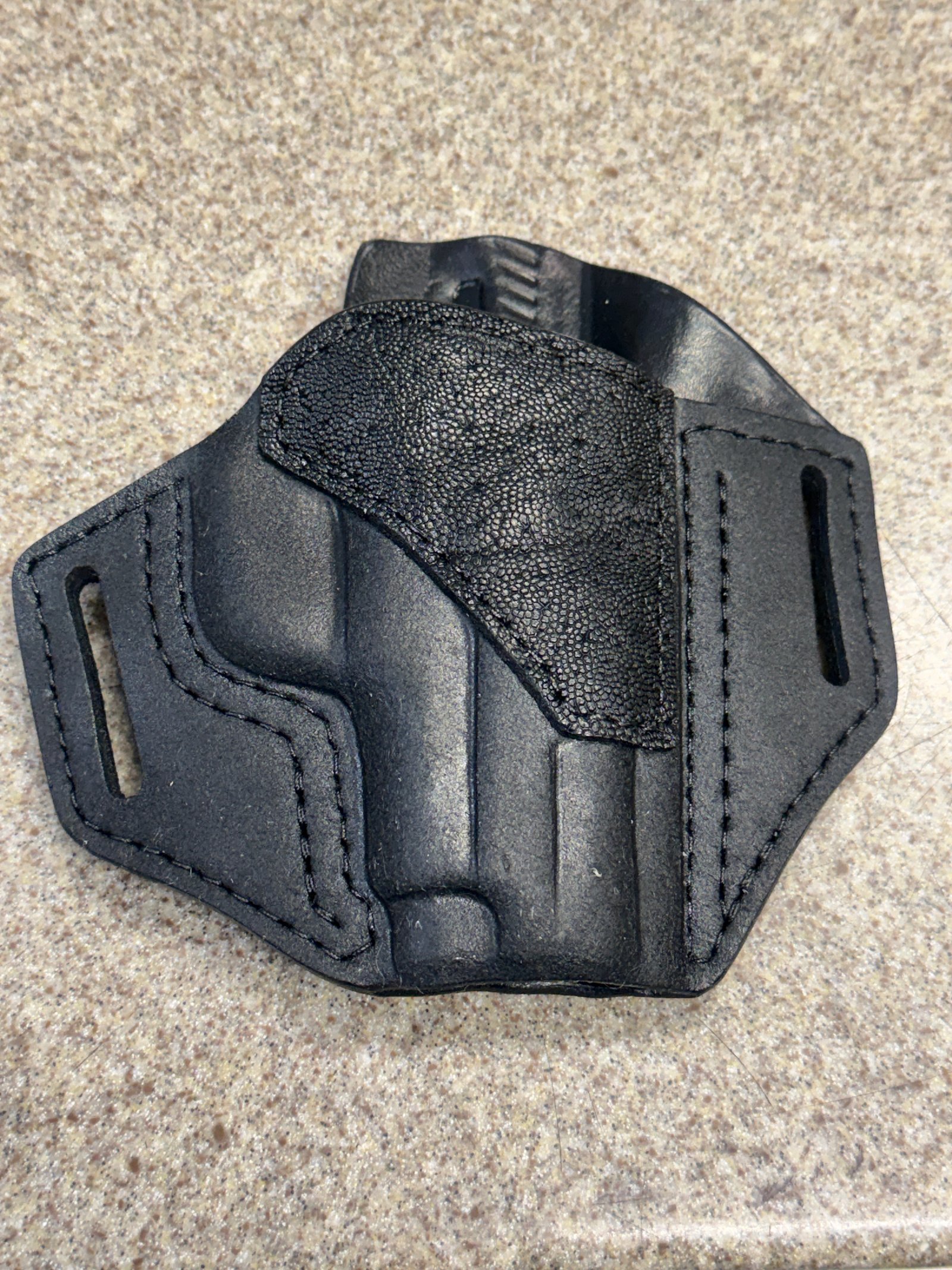 Built for a 3" S&W 19 Carry Comp, 1.5" belt, 10 deg, open muzzle, black.