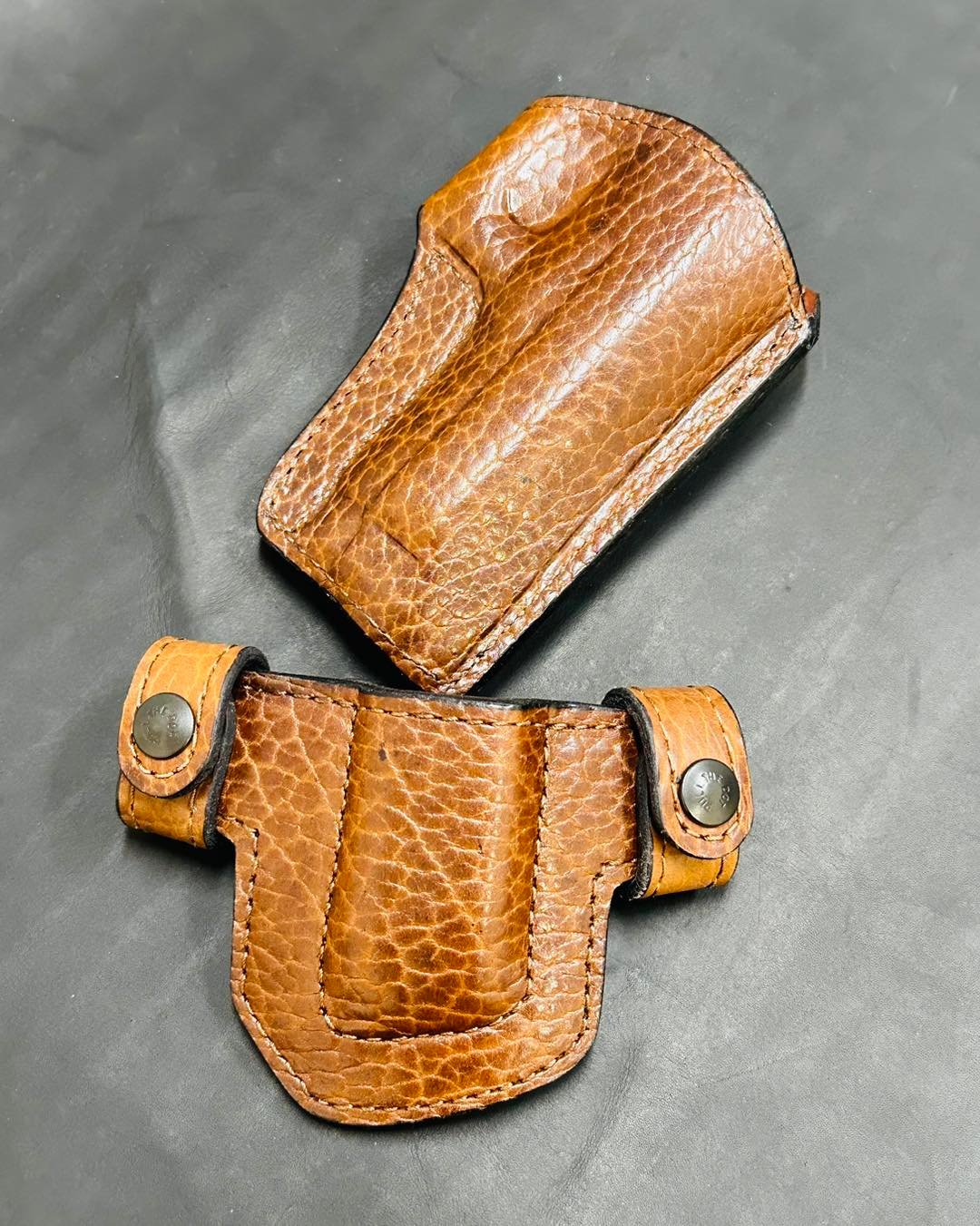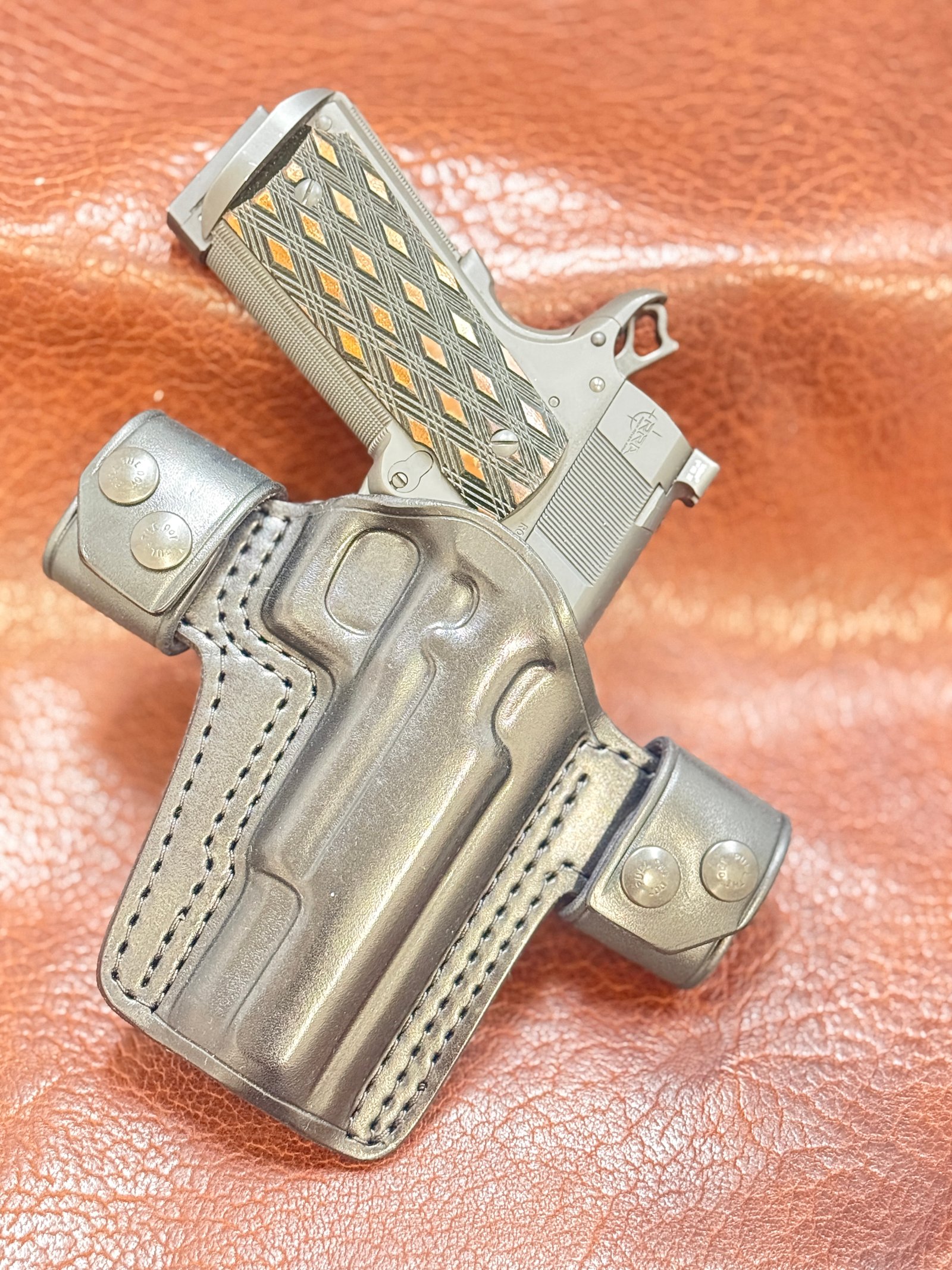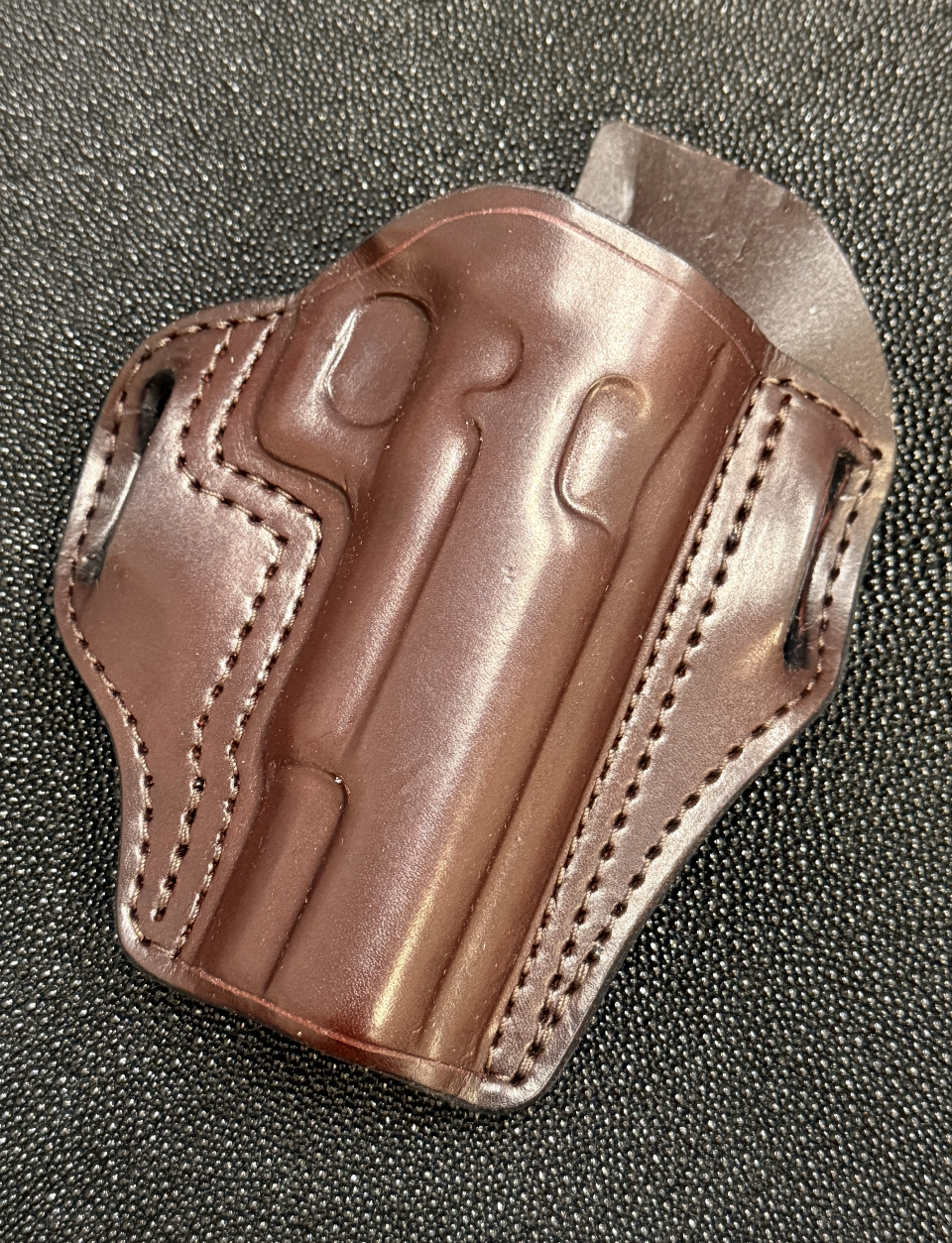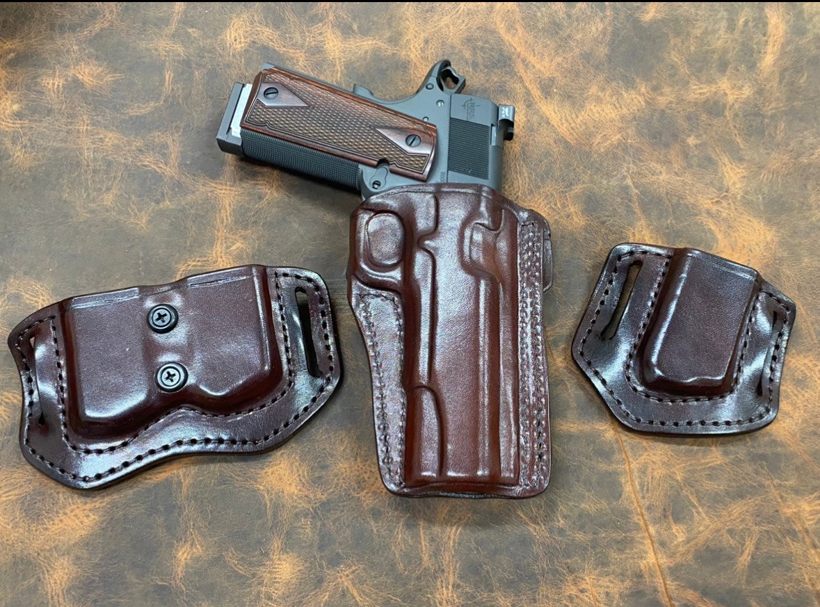 My Orvar belt slide is much like the others on the market. But, I like to think the details I get from the client makes it extremely effective for everyday carry. I also try and keep it streamlined and avoid excess leather, which may keep the butt of the gun from being pulled into the body like it needs to be. Multiple clients have been pleasantly surprised and said it was not like others they have worn.